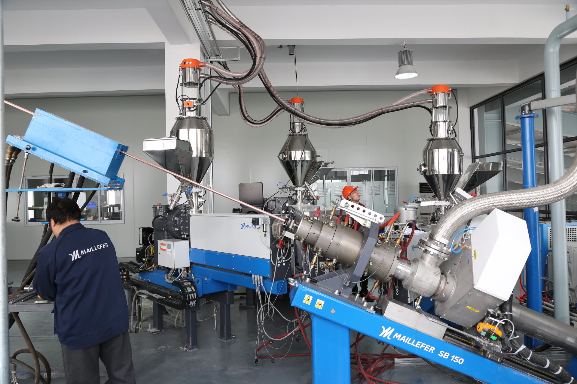 厂区目前已落实了1条芬兰Maillefer110kV超高速智能化交联生产线、2条芬兰Maillefer35KV超高速智能化交联生产线、德国尼霍夫铜大拉生产线、法国波迪亚91盘框式绞线机与3600盘绞机、德国西科拉测偏仪等设备。这些设备将极大程度提高企业生产效率及产品质量。