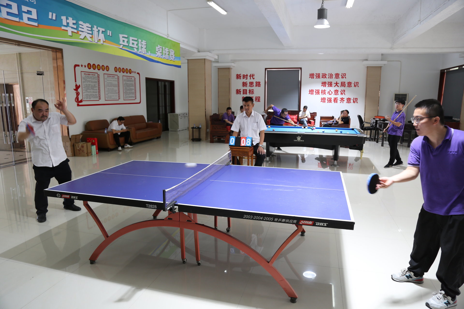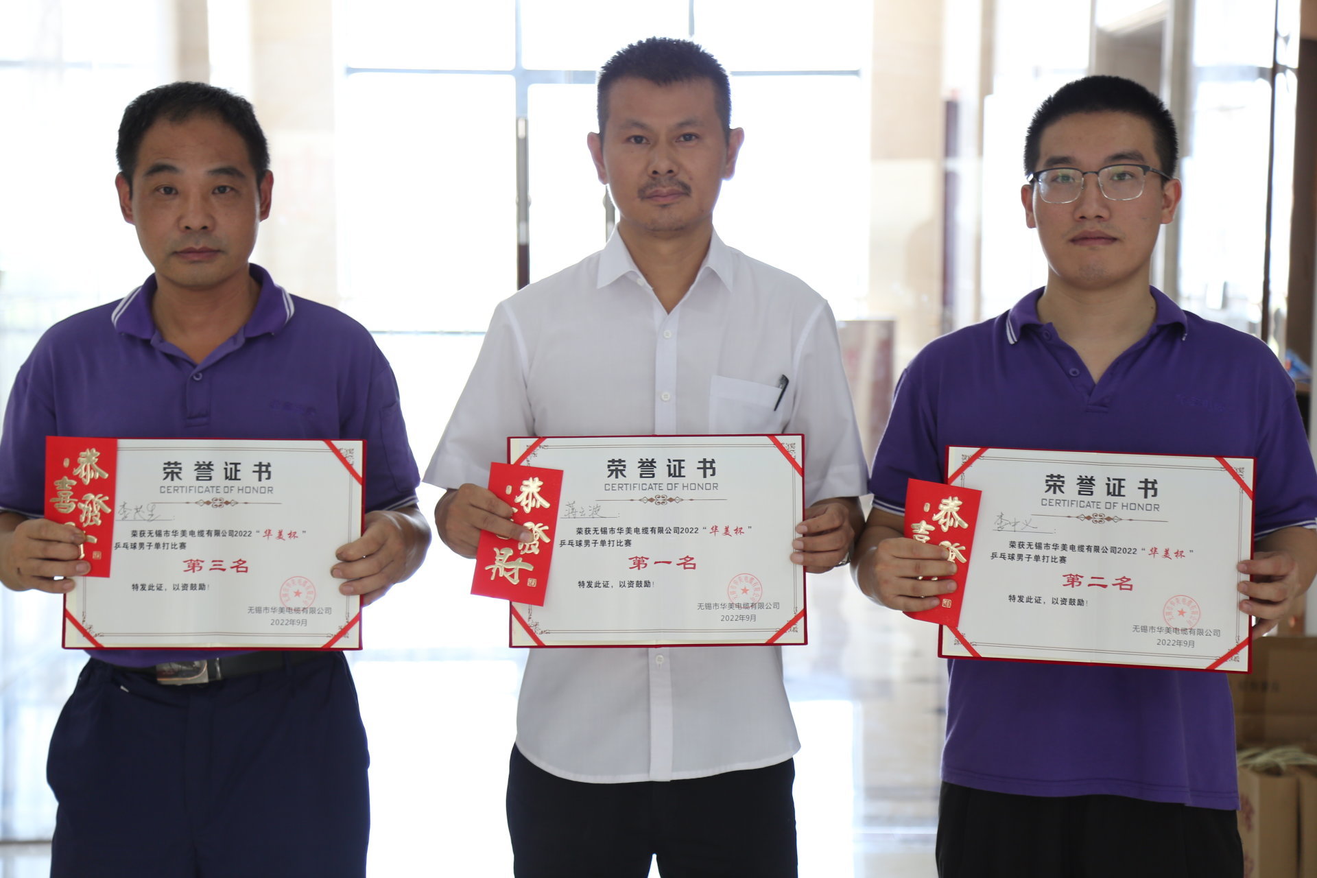 经过激烈的角逐,2022“华美杯”乒乓球、桌球比赛前三名尘埃落定,他们分别是乒乓球男单比赛冠军:蒋云波、亚军:李中义、季军:李茂生,桌球比赛冠军:程斌、亚军:张建华、季军:苏永奇。