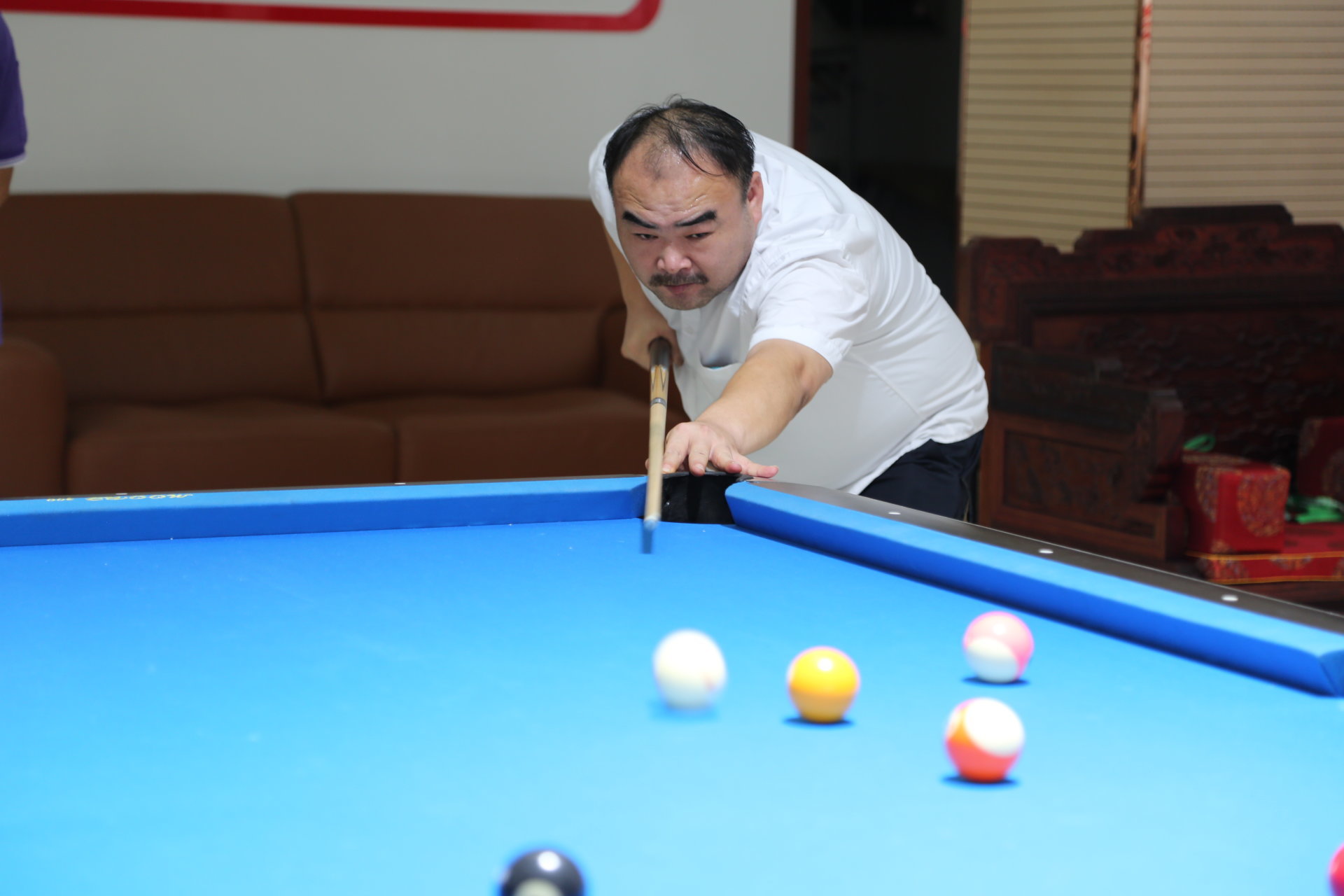眼神专注,精准击打,华丽进球,这一幕幕呈现在桌球比赛的竞技场上。选手们精神抖擞、积极应对,握杆、架桥、出杆、击球。